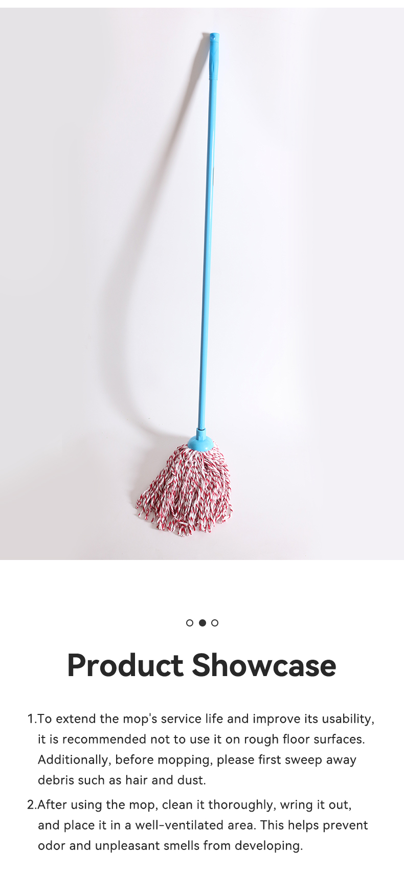 These blue/pink cotton string mops marry style and performance: Ultra-absorbent cotton strands soak up spills fast (great for tiles/hardwood), durable handles withstand daily use, and their playful color palette adds a cheerful twist to your cleaning routine.