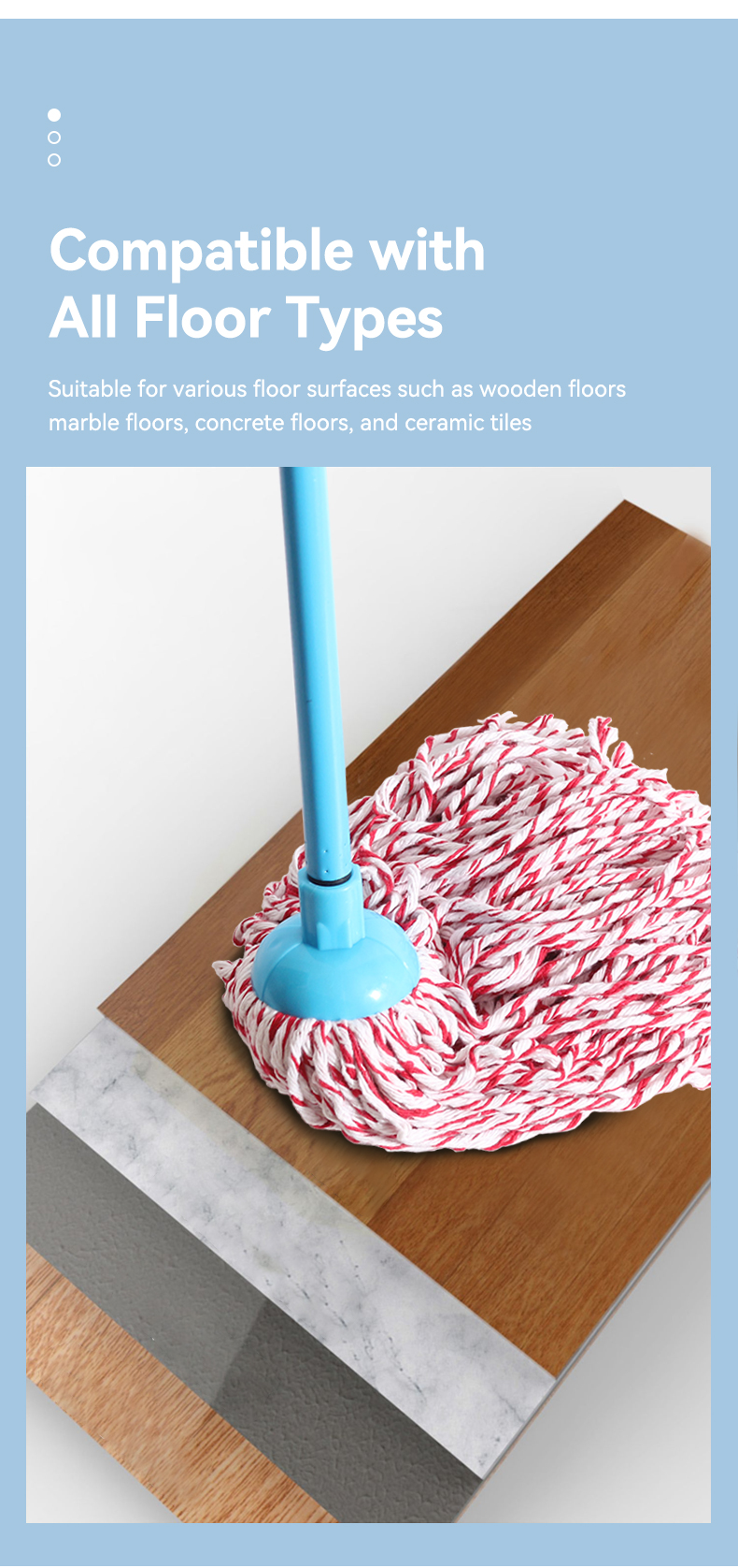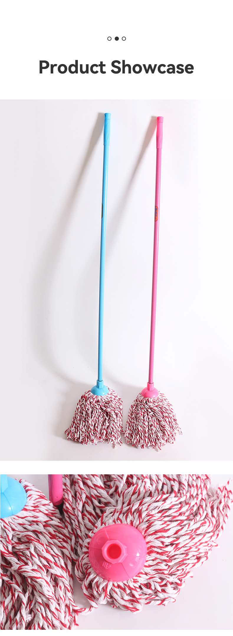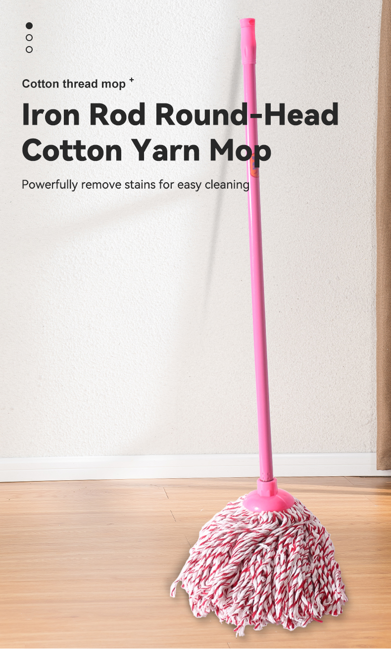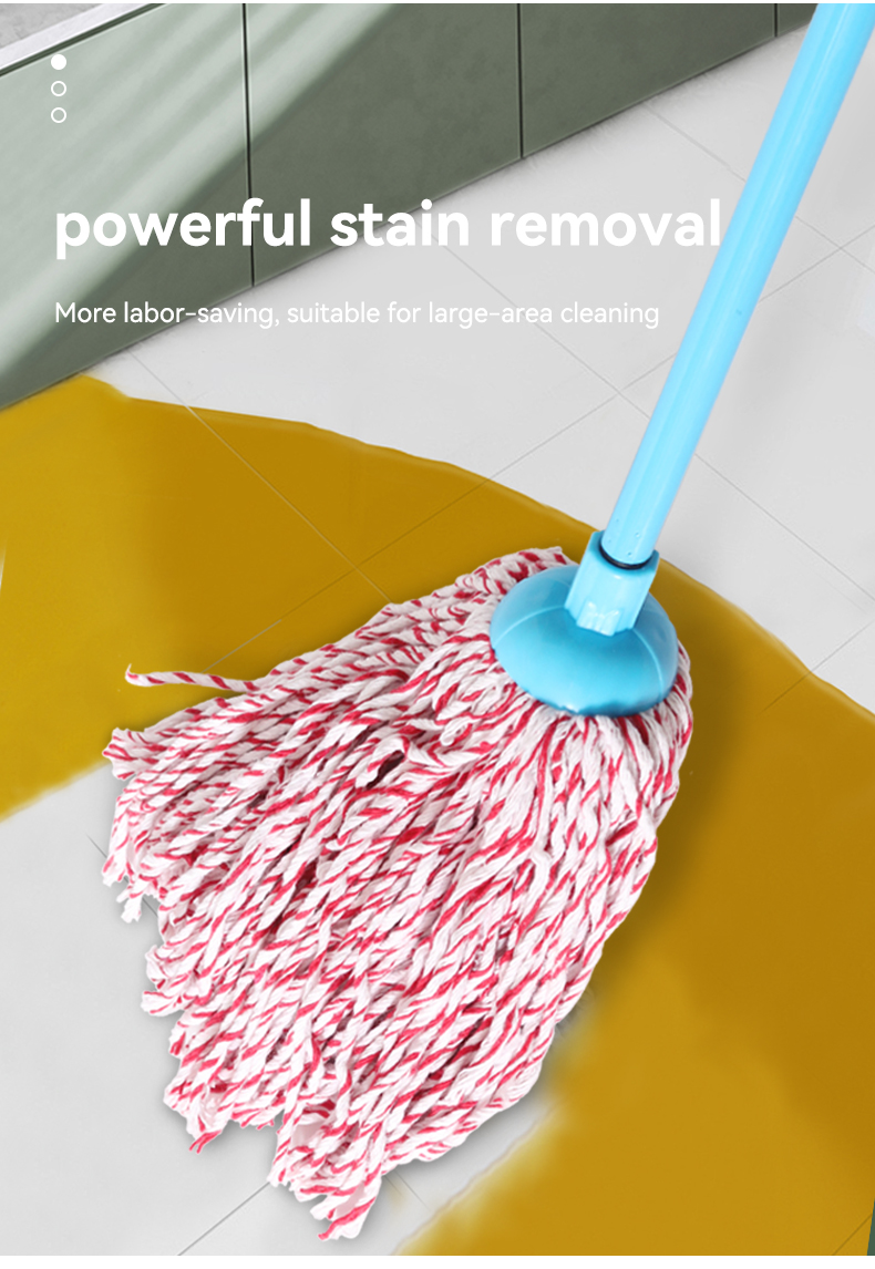 These blue/pink cotton string mops marry style and performance: Ultra-absorbent cotton strands soak up spills fast (great for tiles/hardwood), durable handles withstand daily use, and their playful color palette adds a cheerful twist to your cleaning routine.