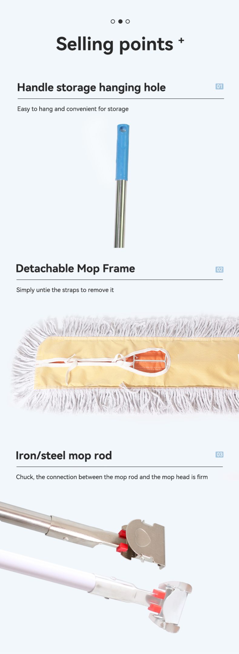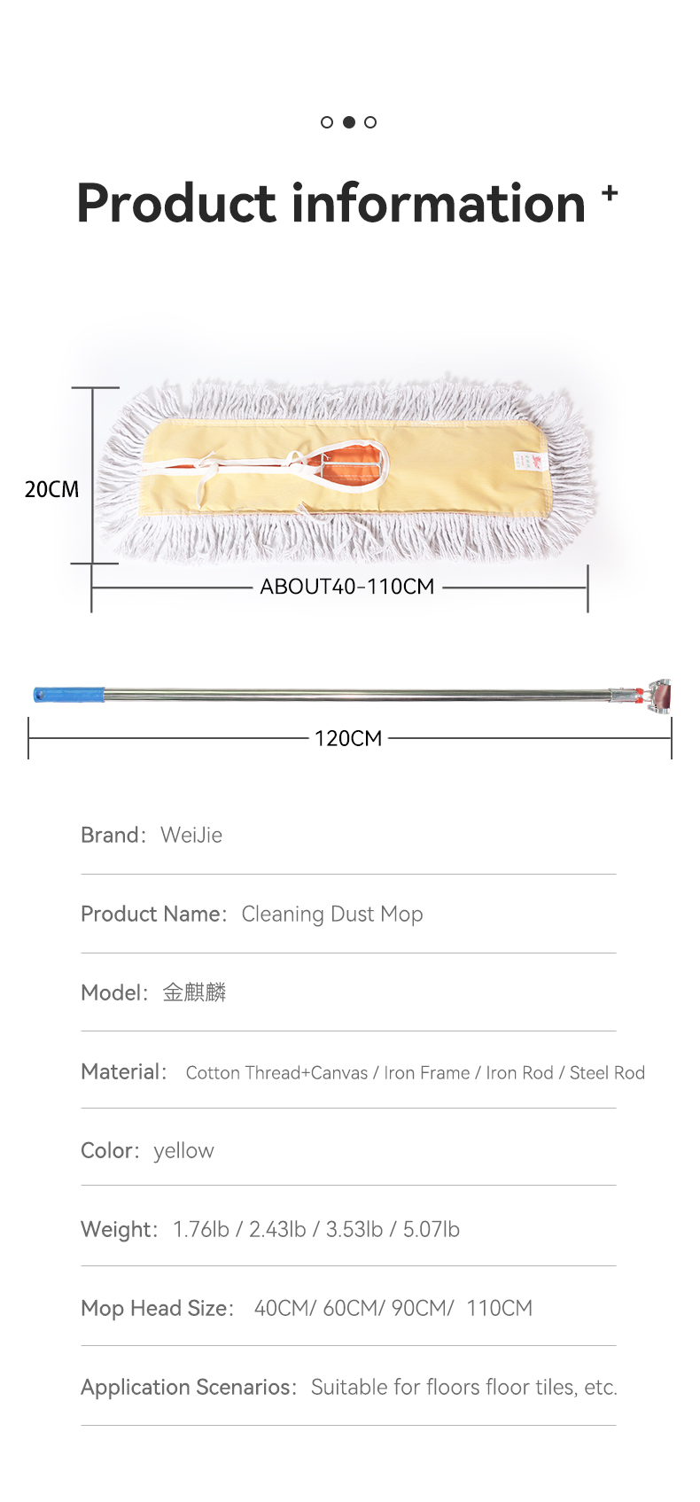 This heavy-duty large flat row dust mop features an extra-wide row-style head that covers more floor area per swipe, slashing your cleaning time. Designed to glide smoothly across tile, concrete, and polished floors, it traps dust and dirt thoroughly—making it ideal for high-traffic homes, offices, and small commercial spaces.