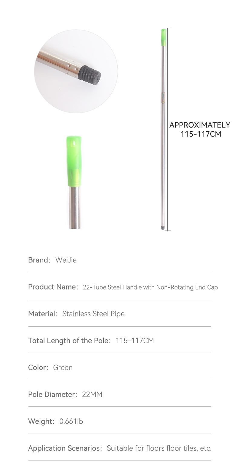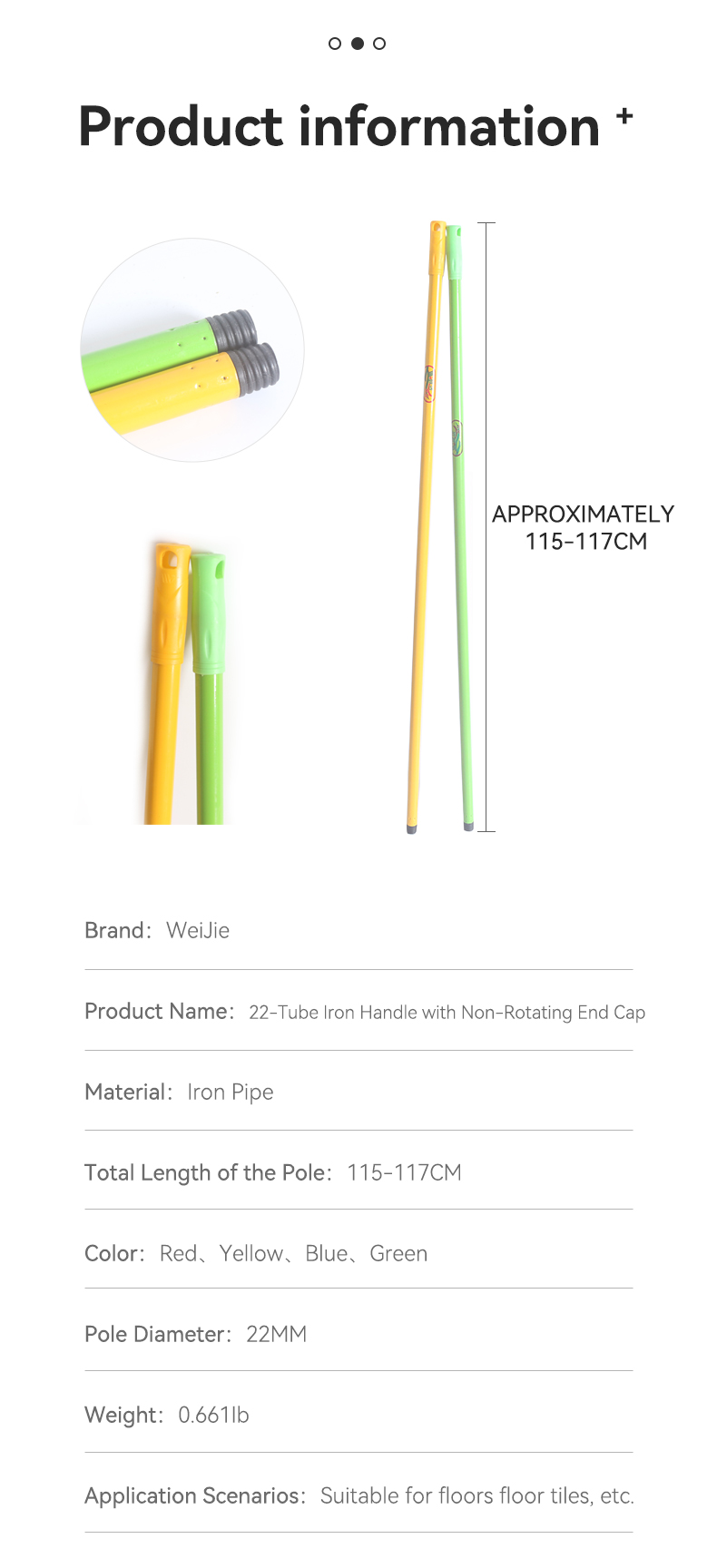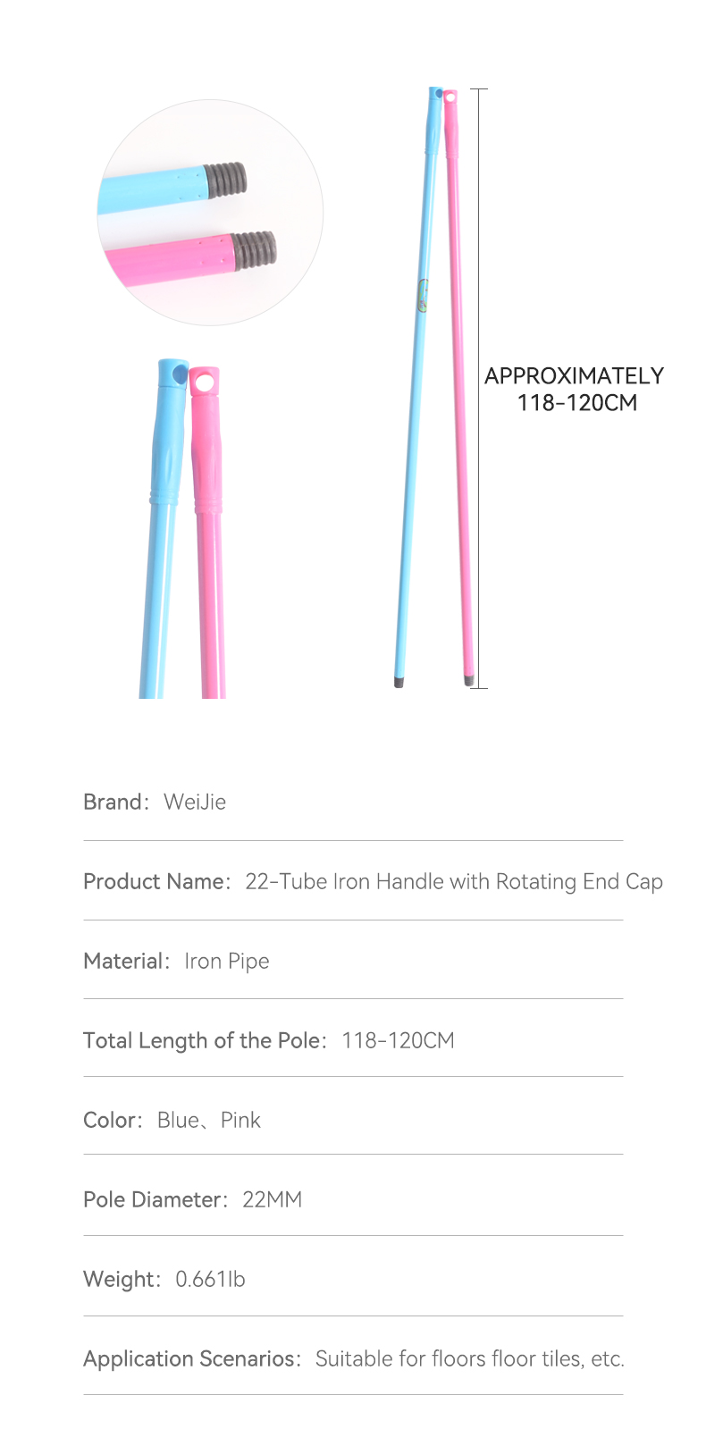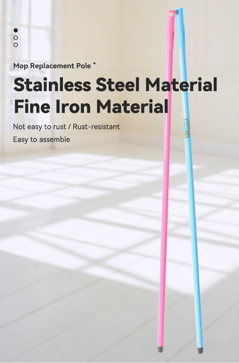 Designed as a universal mop replacement handle, this stainless steel iron pole works with most mop heads. Its robust construction prevents bending or breaking, while the sleek design offers a secure, ergonomic hold. Ideal for refreshing your mop setup, it’s easy to attach and built for long-lasting use in household or light commercial cleaning.