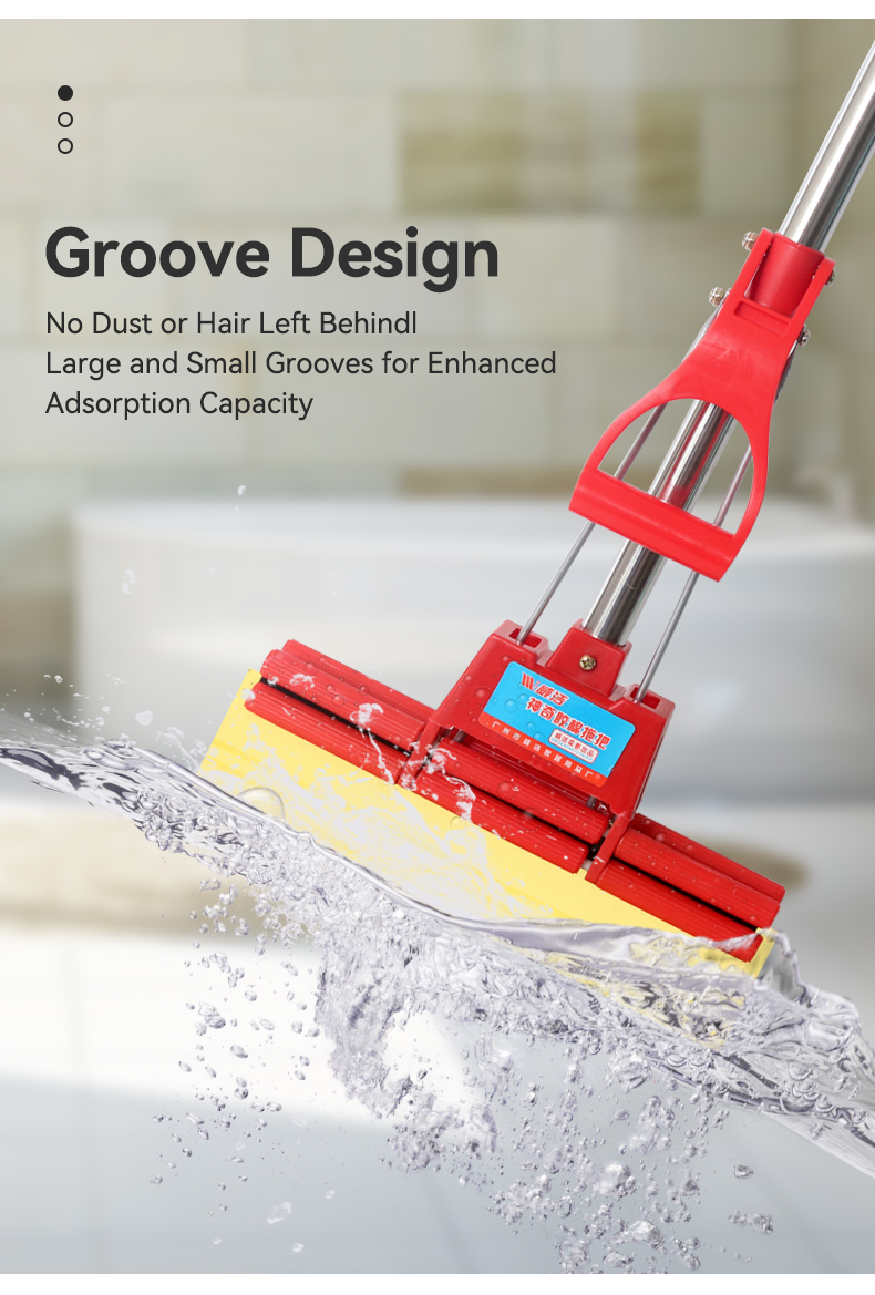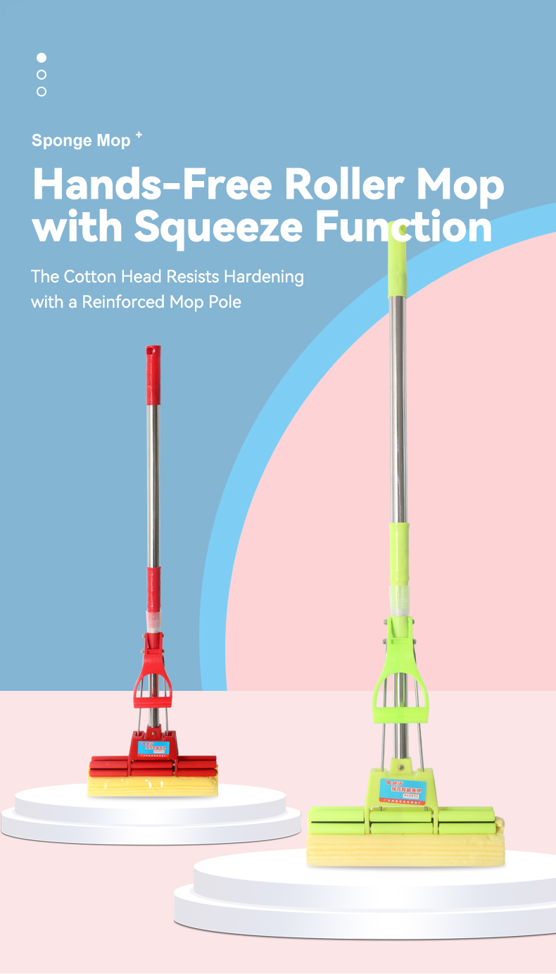 This Roller-Style Absorbent Sponge Mop makes floor cleaning a breeze! Ultra-absorbent foam locks in moisture/spills, while the easy roller squeeze keeps hands clean. Lightweight, ideal for bathrooms/kitchens—perfect for household floor care.