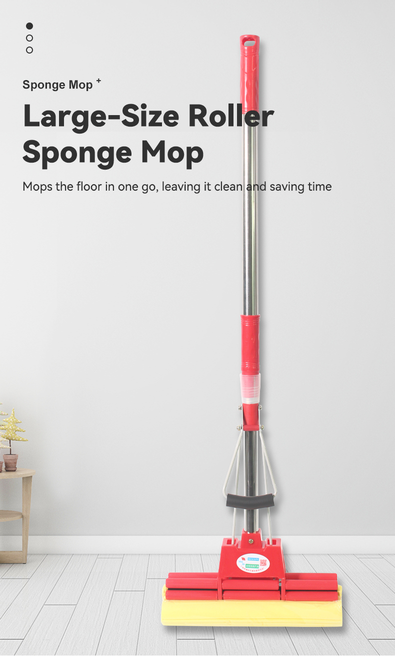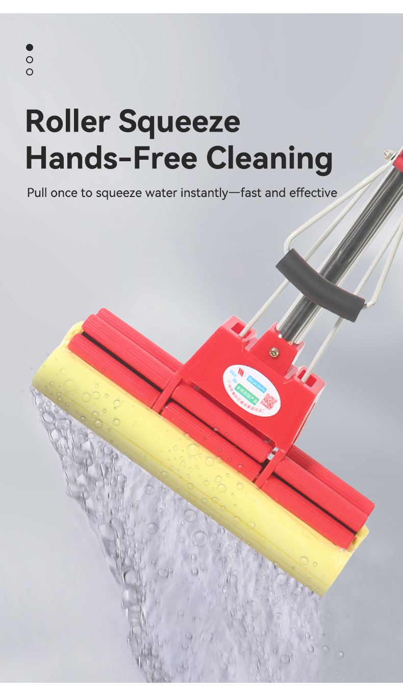 “Roller-Style Super Absorbent Household Sponge Mop: Effortless Squeeze Design for Mess-Free Bathroom & Kitchen Floor Cleaning”