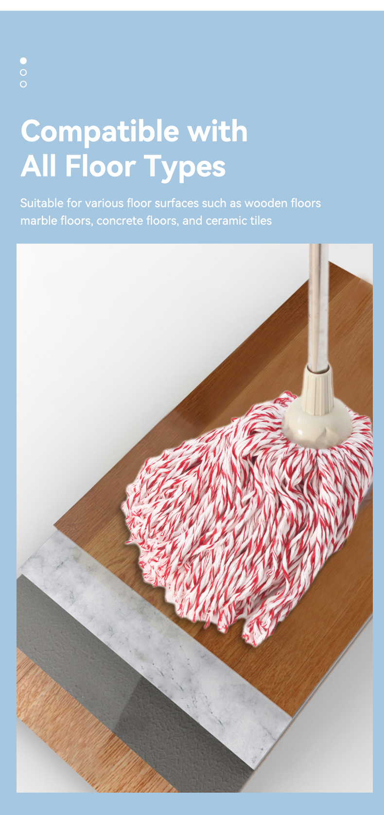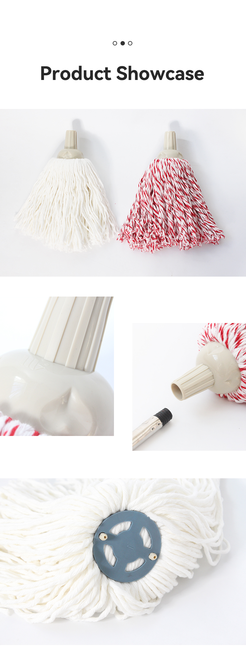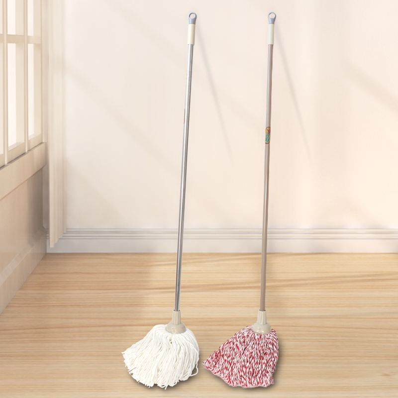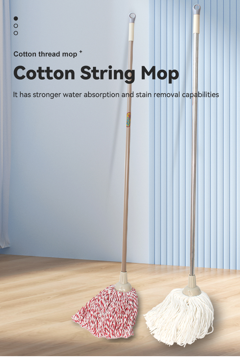 These traditional cotton mops (white/red-white striped) feature sturdy metal handles and absorbent cotton strands. Soft yet durable, they’re perfect for gentle, effective cleaning of home floors (tiles, hardwood) without scratching surfaces