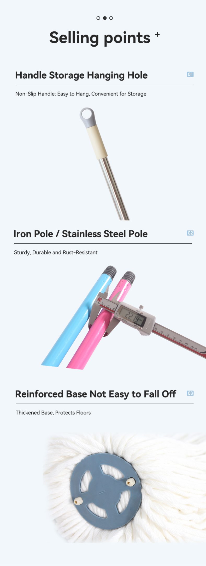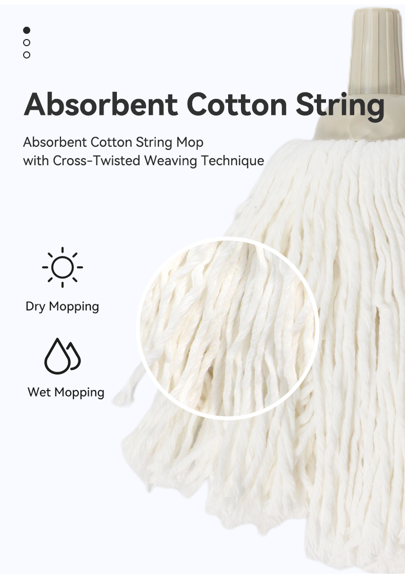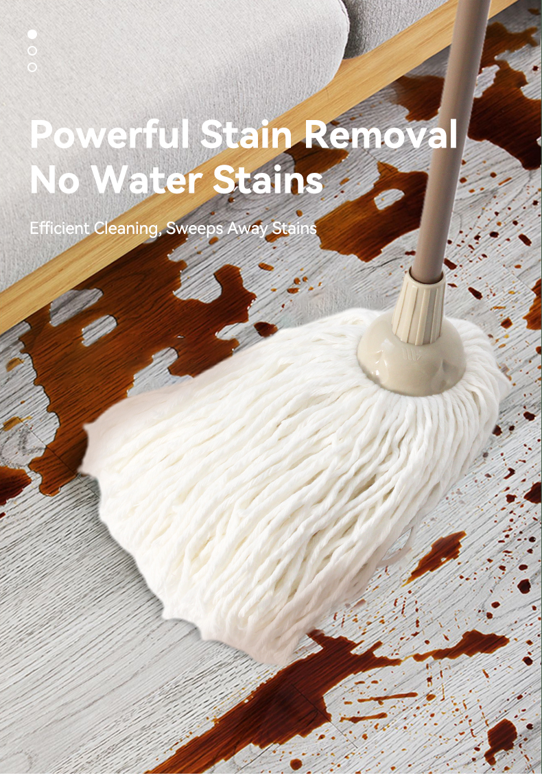 These traditional cotton mops (white/red-white striped) feature sturdy metal handles and absorbent cotton strands. Soft yet durable, they’re perfect for gentle, effective cleaning of home floors (tiles, hardwood) without scratching surfaces
