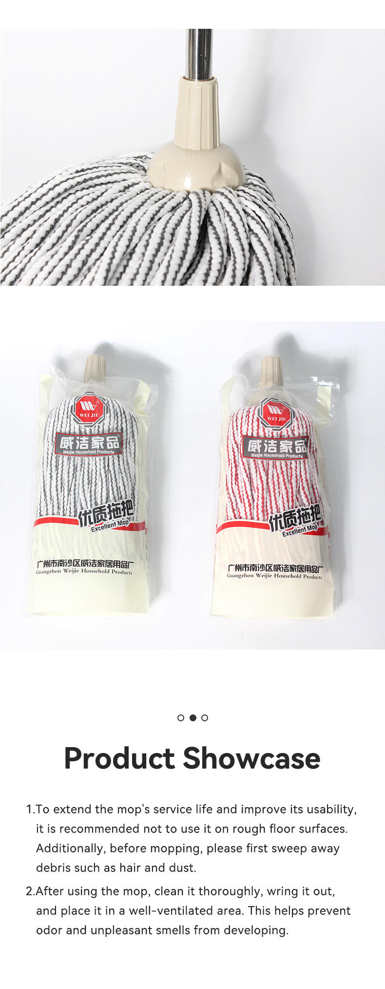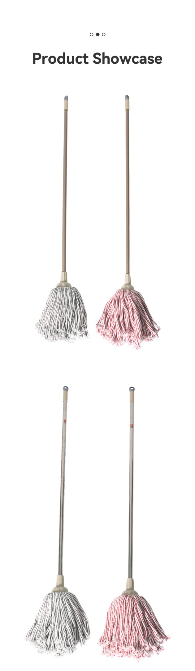 This traditional round-head hollow cotton mop comes in pink-white or gray-white stripes: its hollow cotton design boosts absorbency, and the classic round head covers more area per swipe. Pick pink-white for a bright look, or gray-white for stain resistance — durable, soft, and ideal for all home floor types.