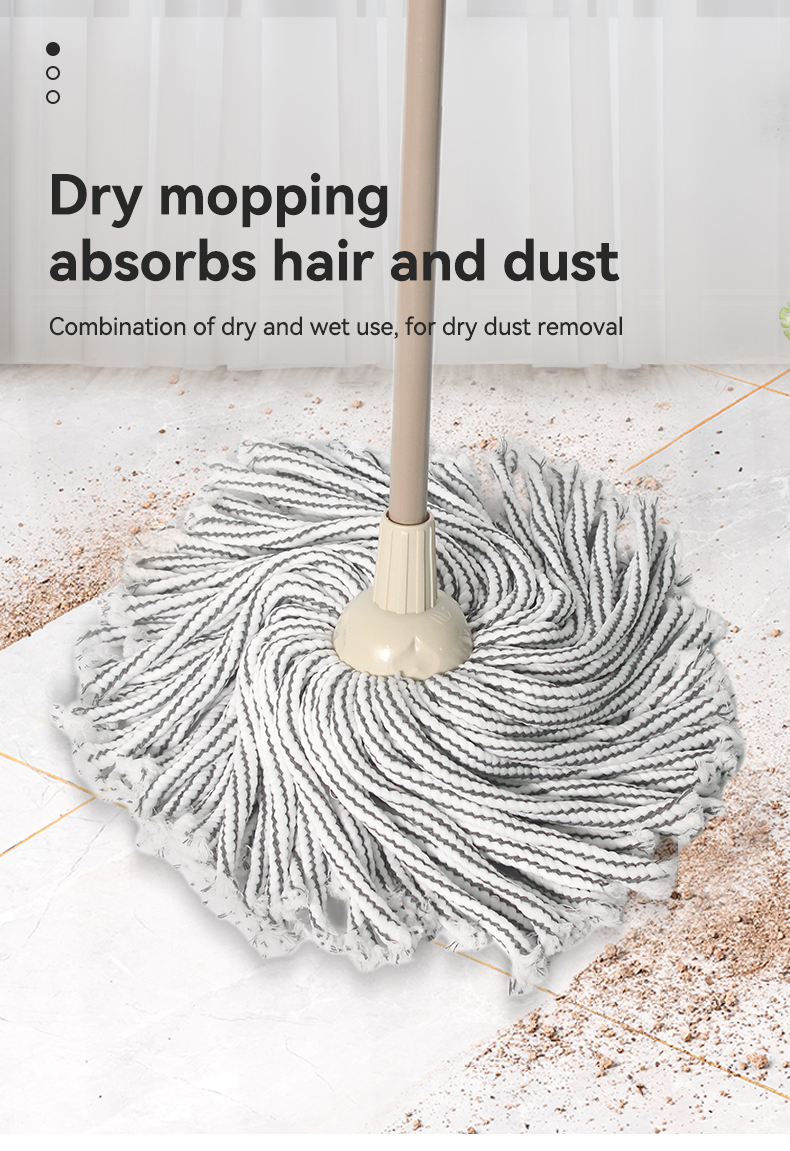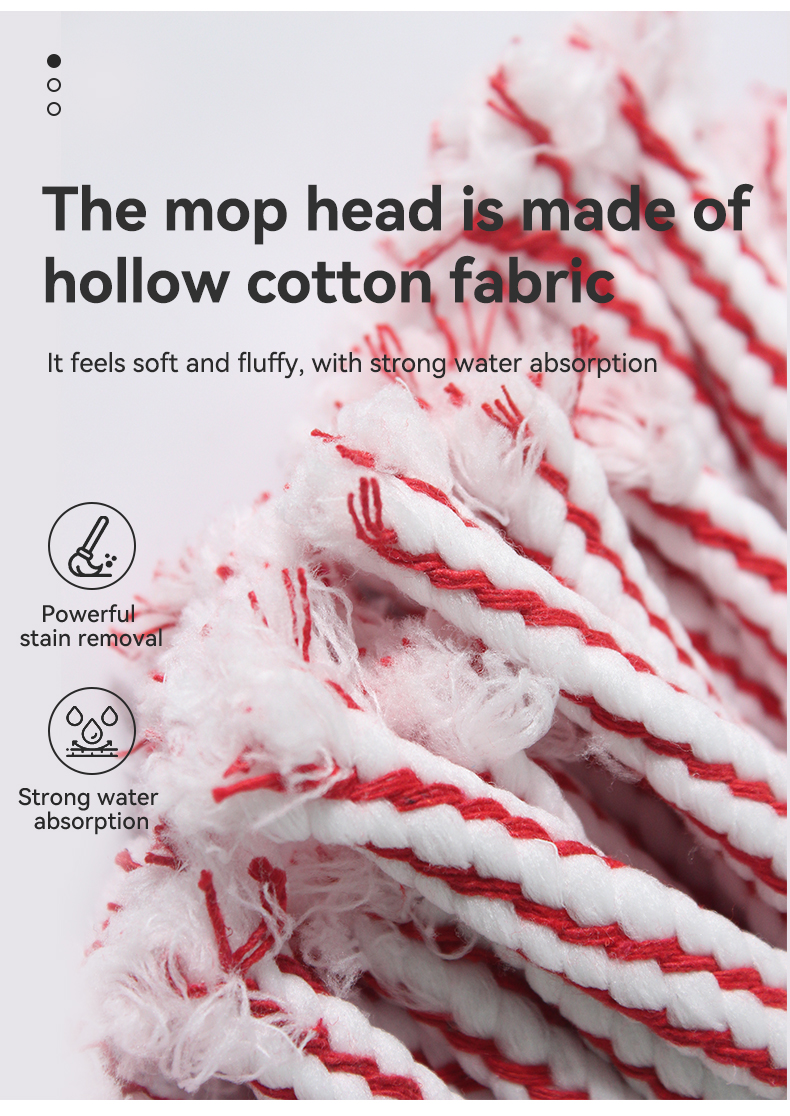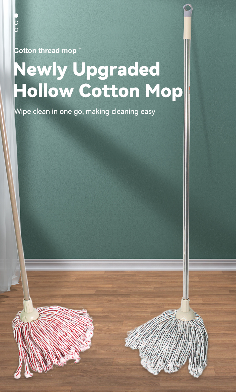 This traditional round-head hollow cotton mop comes in pink-white or gray-white stripes: its hollow cotton design boosts absorbency, and the classic round head covers more area per swipe. Pick pink-white for a bright look, or gray-white for stain resistance — durable, soft, and ideal for all home floor types.