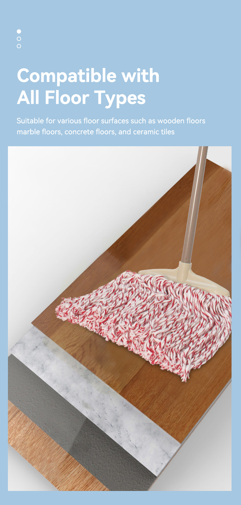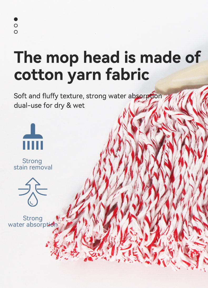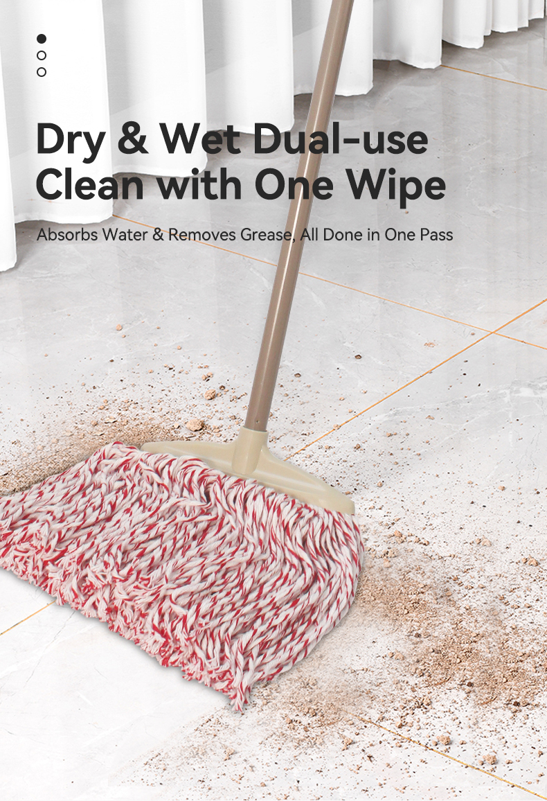 This vintage dual-style wide-head yarn mop blends timeless charm with practical performance. The soft, thick yarn glides gently across floors (no scratches!) while locking in grime, and the two color options (white/red-white) add a subtle, classic touch to your cleaning tools. Lightweight yet durable, it makes quick work of mopping sessions for a spotless home.