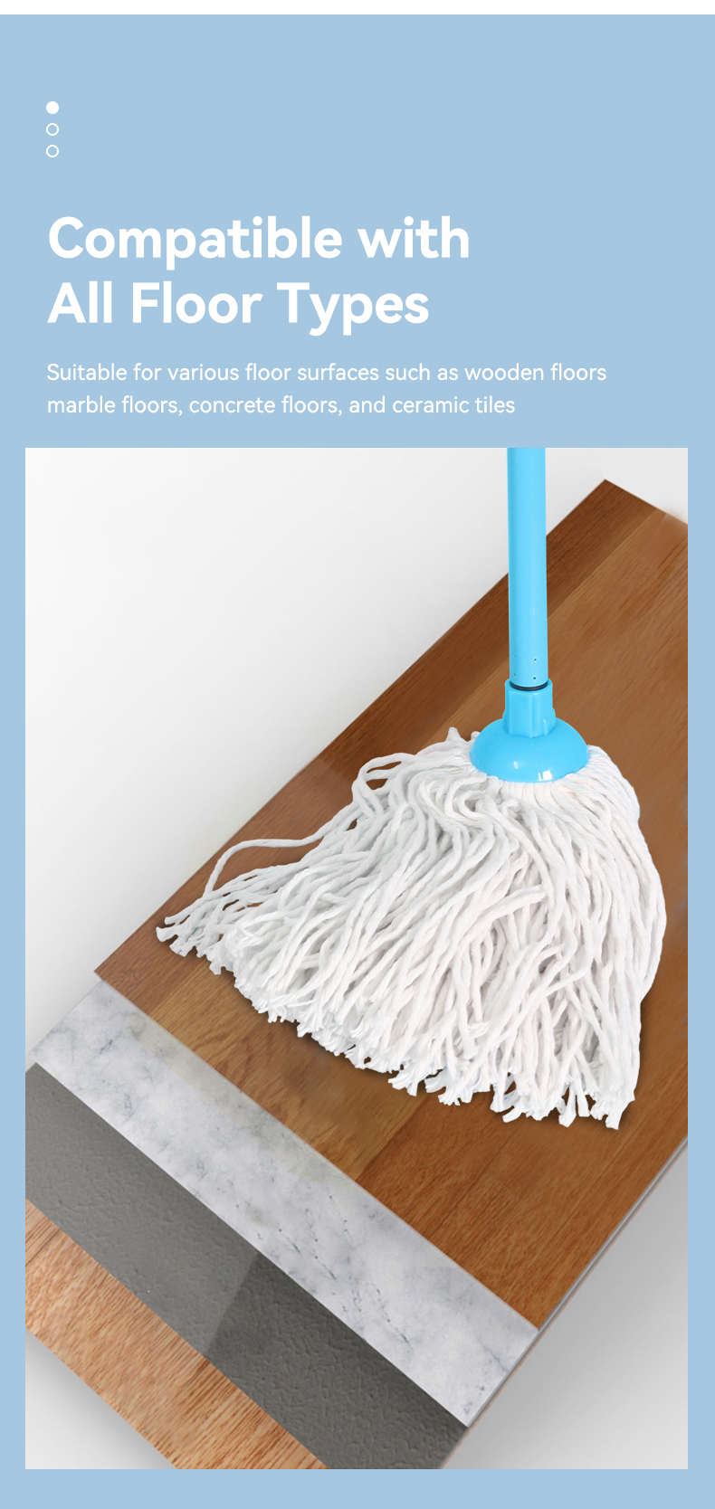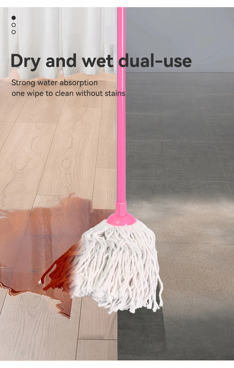 Designed with upgraded thickened cotton threads, this traditional household mop offers strong absorption and lint-free performance. Its detachable head allows easy cleaning and replacement, while the sturdy iron handle ensures durability. Ideal for hassle-free cleaning in living rooms, bedrooms, and kitchens—practical for any home’s daily needs.